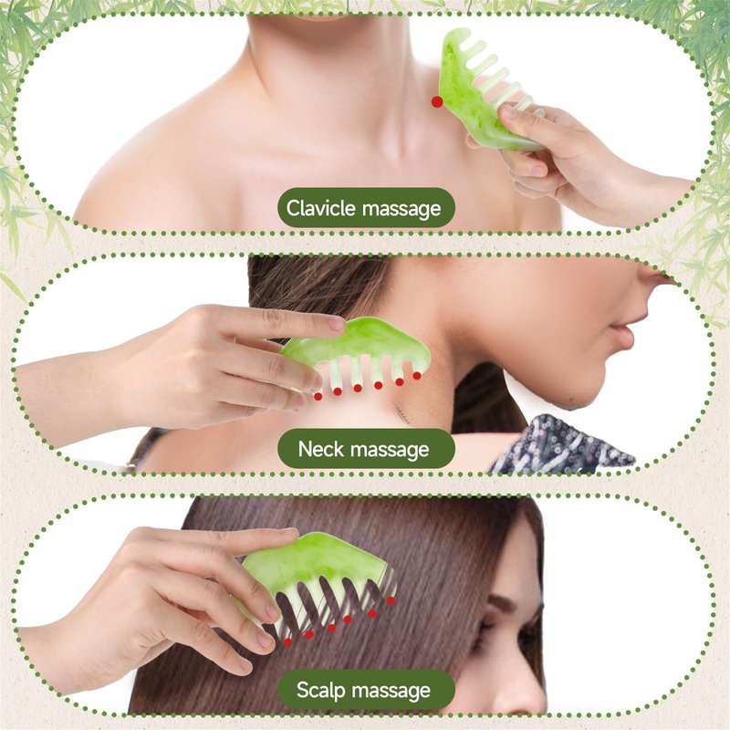 - 【You Will Get】Jade Stone Massage Comb consists of 2pcs head massage combs, sufficient quantity and various styles, jade comb enough for your daily replacement or use, you can also share guasha tool with your family or friends.