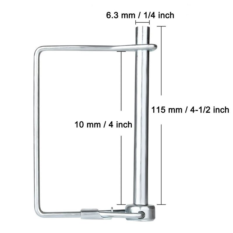 - 【Standard Size】The square shaft locking pin has a diameter of 6.3mm/ 1/4 inch and a length of 100 mm /4 inch, suitable for a variety of trailer connectors.