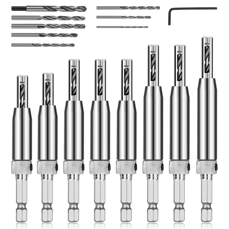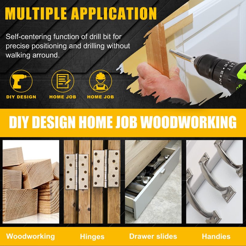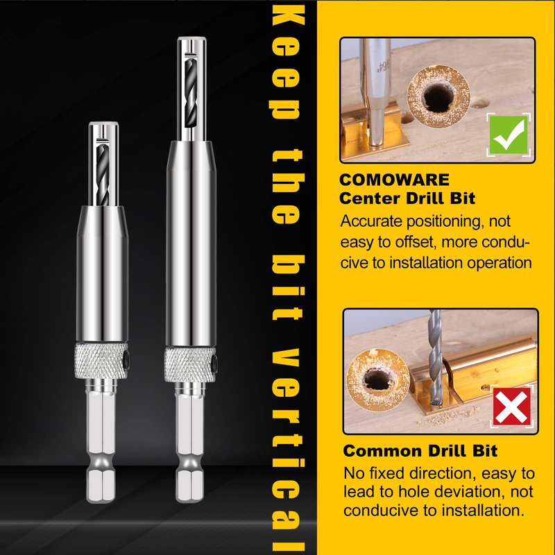 - Accurate Tool: Adjustable design allows you to replace drill easily. The automatic positioning center improves positioning accuracy and efficiency. Wood chips will be automatically discharged from the holes on both sides of the top of the bit, which will not block the bit. It is a must for professionals and DIY personnel.holes, They make alignment of holes so much easier and you can get center every time