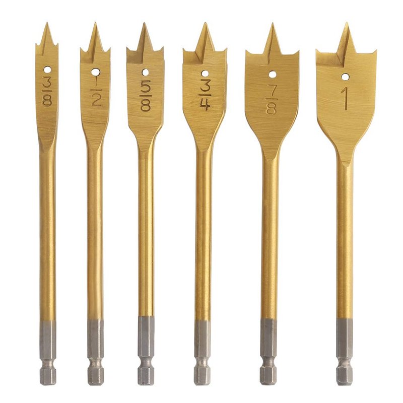 COMOWARE Spade Drill Bit Set- Paddle Flat Bits, Hole Cutter, Titanium Coating, Carbon Steel, Woodworking, 6-Pieces, 3/8"-1"