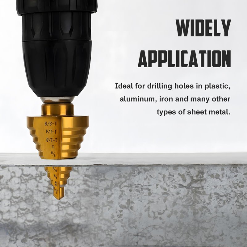 - Versatile Hole Processing: Our step drill bits cater to a wide range of hole diameters, effectively eliminating the hassle of switching between multiple bits. This versatility proves invaluable for tasks involving metal, wood, and plastic, including countersunk holes.
