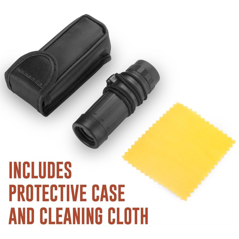 There's no end in sight to what all you'll see with this monocular by Grizzly Peak. Measuring just 3.5" x 2", and weighing under a half pound, this miniature telescope packs and travels easily. With a basic 8x21 magnification, ultra-low profile and 3.5" x 30mm x 28mm range, this is the perfect starter model for kids and adults both. Use the carrying string to keep your monocular safely strung around your neck or wrist, then pack them away in their protective storage pouch when you're done/ Whether you're traveling, hunting, bird watching, surveilling, coaching, or even attending a concert or sporting event, this monocular will help you see all the sights.