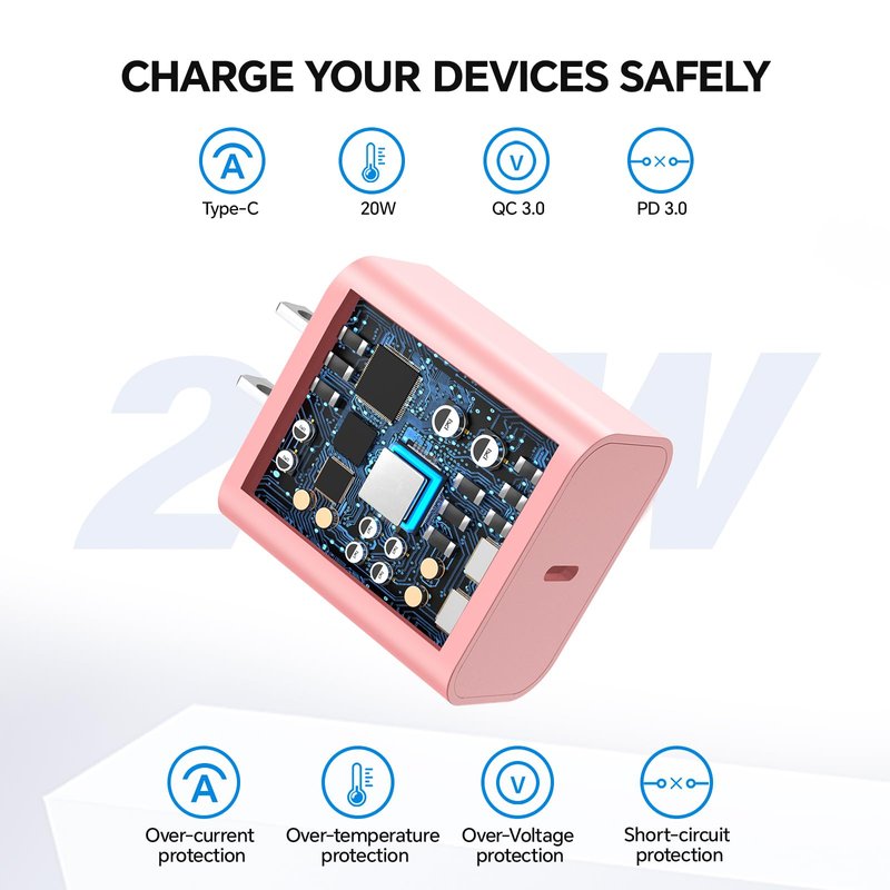 Built-in advanced USB Power Delivery 3.0 chip, and loaded with 20W of output power to give your iPad pro 2020/2018 12.9/11 a full-speed charge.The Power Delivery Wall Charger for i Phone owns a built-in multi-protection system, avoiding over-voltage,over-charge,over-heat, etc.
