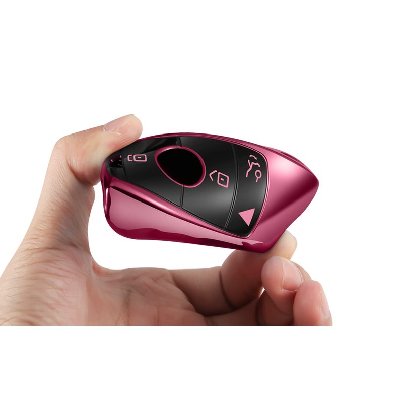 Compatible with Mercedes Benz Key Fob Cover with Keychain,Soft TPU 360 Degree Protection Key Shell Case for 2019-2021 A-Class C-Class G-Class 2017-2020 E-Class S-Class (Pink)