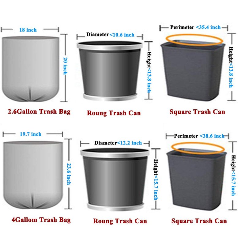 - 【Trash Bags Size】: 18 Inch * 20 Inch garbage bags which is fit with small size trash bins, round garbage bins with diameter ≤ 11 inch, height ≤ 14 inch, rectangular wastebaskets with longest side ≤35.4 inch and height ≤ 13.8 inch.