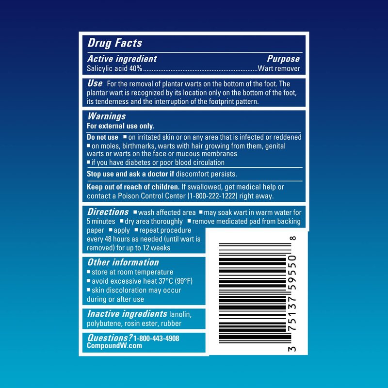 - Compound W Plantar Pads are easy to use — simply apply and repeat every 48 hours until the wart is removed; Wart remover can be used by adults and children 3 years of age or older