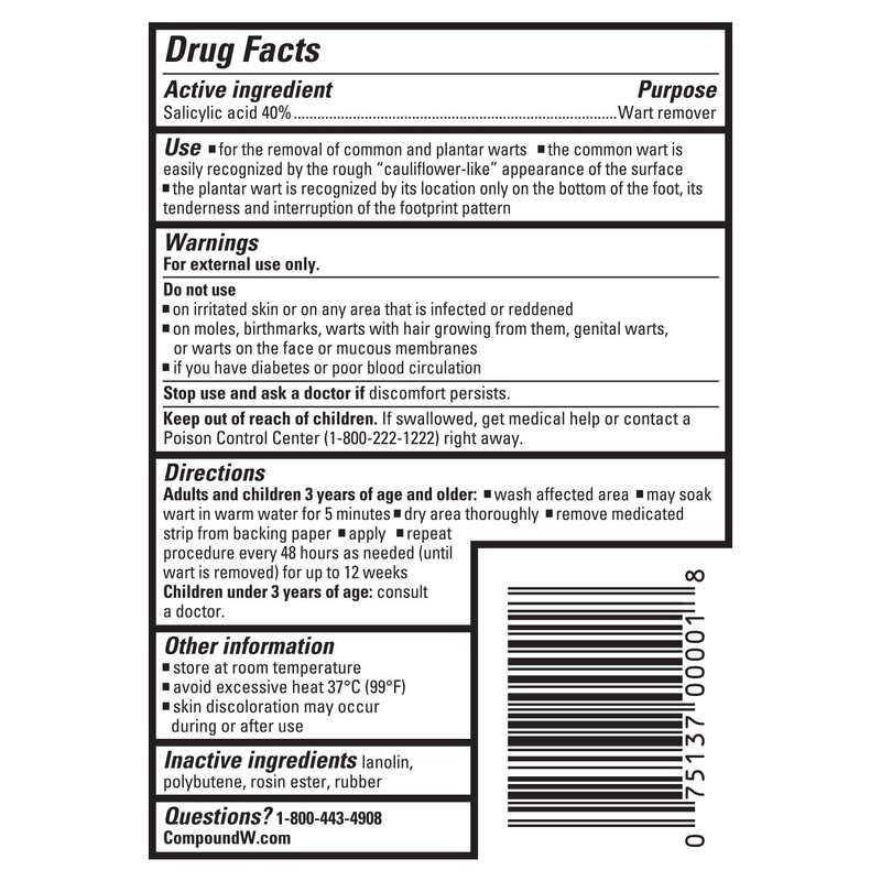- Compound W strips are easy to use — simply apply and repeat every 48 hours until the wart is removed