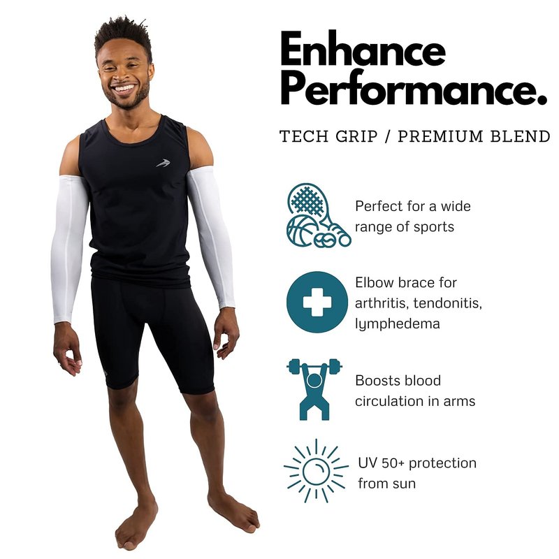 - Durable Elbow Compression Sleeve: Arm sleeves support tired, sore, or injured muscles. Ideal for use as an arm brace for any activity. Purchase a size down for added compression.