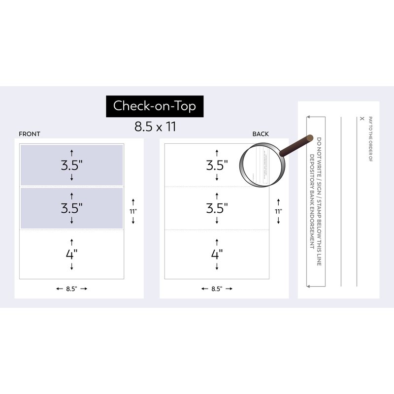 - Each check measures 3.5 x 8.5 inches