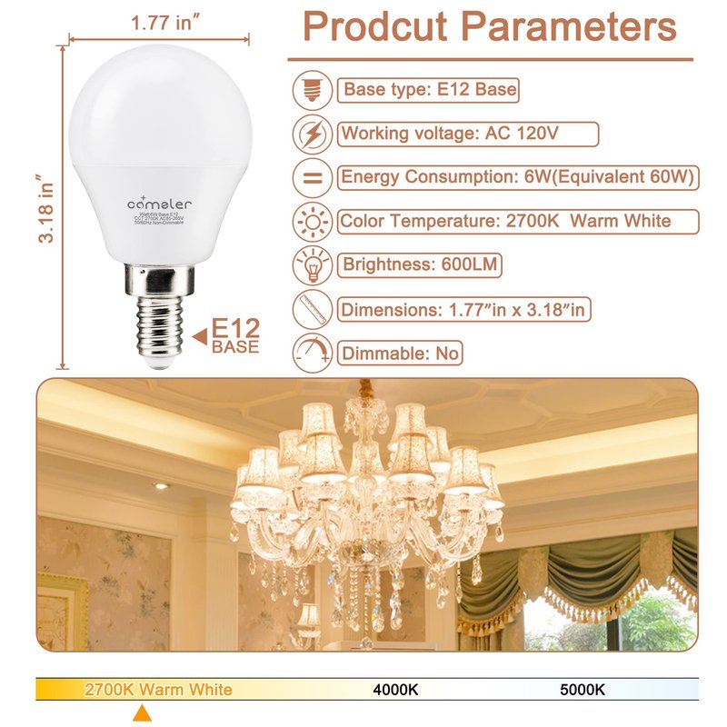 - Standard small screw base(E12), perfectly fits candelabra base lamp. Besides, the base of bulb is stable and safe, you can use it with absolutely confidence.