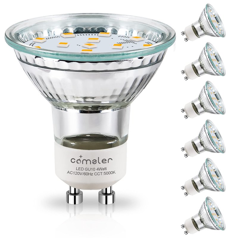 comzler GU10 LED Bulbs, GU10 Light Bulb 5000K Daylight White, LED Bulb Replacement Recessed Track Lighting, 50W Halogen Equivalent, 4W 400LM 110° Wide Beam, Non-dimmable, Pack of 6
