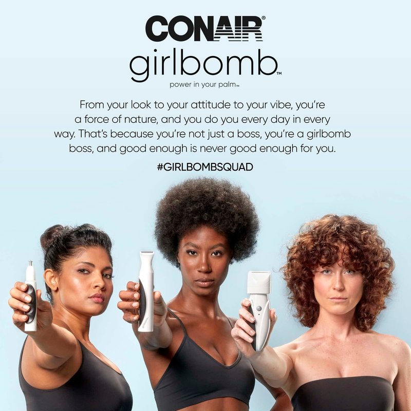 - GIRLBOMB Grip: the grip of all Conair GIRLBOMB products are ergonomically designed to fit perfectly in the palm of your hand.