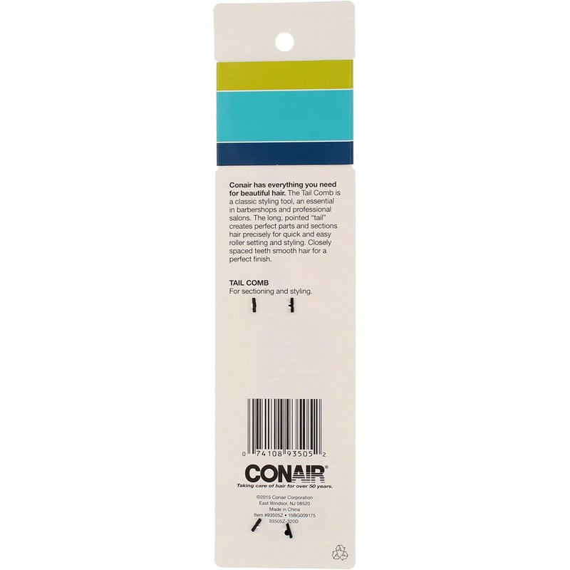 For sectioning styling. Chemical resistant. Conair has everything you need for beautiful hair. The Tail Comb is a classic styling tool an essential in barber shops and professional salons. The long pointed tail creates perfect parts and sections hair precisely for quick and easy roller setting and styling. Closely spaced teeth smooth hair for a perfect finish. Safe for use with chemical-based styling products.