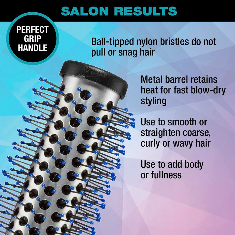 - PERFECT FOR BLOW-DRY STYLING: Metal barrel with ball-tipped nylon bristles retains heat longer to speed up drying for salon blowouts and effortless curling at home.