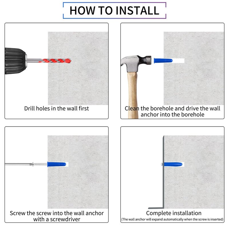 - Convenient Installation: The masonry anchors and screws kit come with corresponding size drill bit, You can use it to drill just the right size hole on the wall, then knock the anchor in, and finally screw the screws in, without you having to think extra about what size tool to use