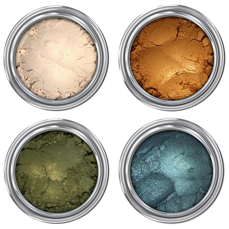- The Complete Look— 4 complementary eyeshadow shades that can be mixed & matched to perfect any look. Includes 1 Still Ill (frosted white-gold), 1 Calavera (marigold yellow), 1 Living Dead (moss green with brilliant copper undertones), and 1 Temptress (dark teal with gold sparkle). 2 grams loose mineral eyeshadow powder of EACH color