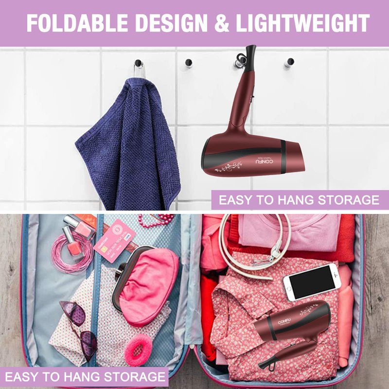 - ✅【Foldable & light & compact】Hair Dryer is very light and compact. One hand can also be held. Lightly blow-drying your hair will also work. The hands don't feel tired. Enjoy the blow-drying process even more. Hair dryers are collapsible, so they don't take up too much valuable space. Because it's easy to take when you travel, it's very convenient.