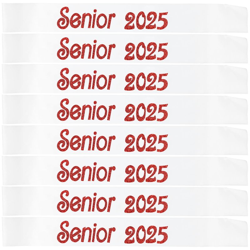- [Senior Sashes class of 2025 White red]-- 8PCS White Satin Senior Sashes "Senior 2025". It's perfect decorations for Graduation Party, Sports Competition, Pep Rally. The Senior 2025 Sash with red glitter letter. This elegant senior sash will make you stand out and turn heads wherever you are. Dress up and enjoy being the center of attention on the Graduation.
