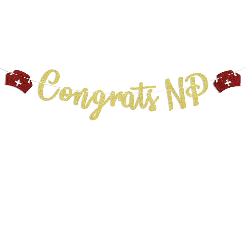 - ❤ "Congrats NP" graduation banner in glitter gold, Class of 2024 Nurse/Doctor Graduation Decorations