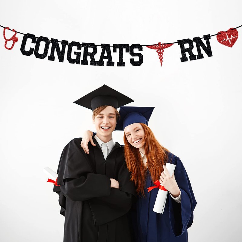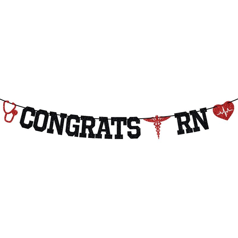 Celebrate your nursing school survivor with this eye-catching Congrats RN Banner!