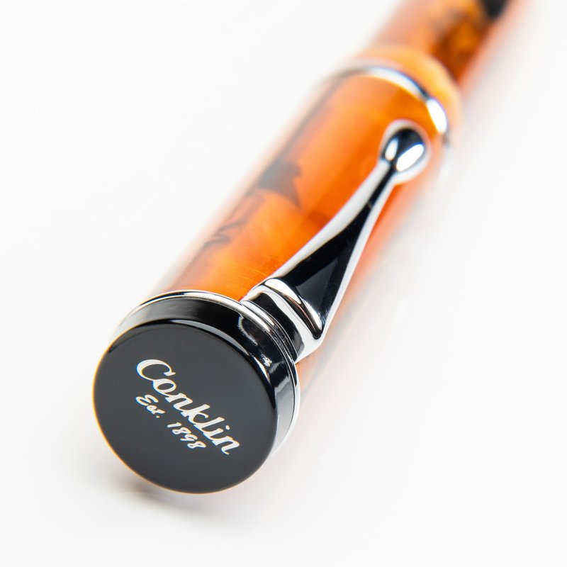 - Ballpoint pen. Quality handmade resins. Available in fountain pen. Cap embellished with Conklin logo.