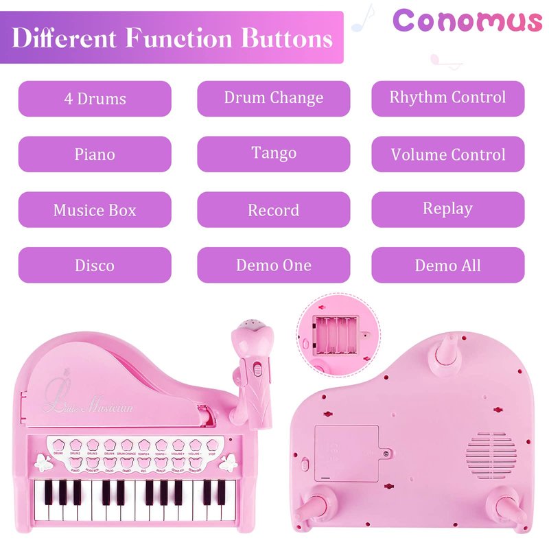 Conomus Piano Keyboard Toy for Kids-1 2 3 Year Old Girls First Birthday Gift -24 Keys Multifunctional Musical Electronic Toy Piano for Toddlers