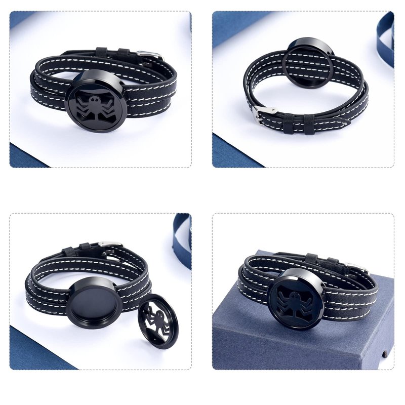 constantlife for Kids Adult Stainless Steel Allergy Free Aromatherapy Prefume Essential Oil Diffuser Lockets Leather Band Bracelet (Black)