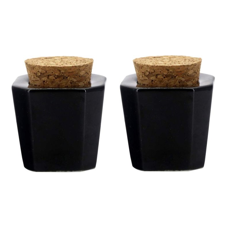 ConStore 2pcs Porcelain Material Dappen Dish with Soft Wooden Cap Liquid Powder Container Case Bottle Holder Nail Art Acrylic Dappen Dish Nail Beauty Acceesories (Black)