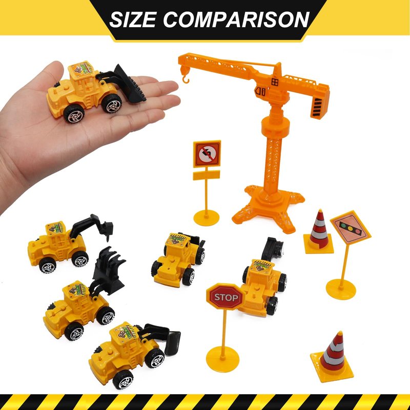 - 【Proper size】The size of construction vehicle is about 3.2 inches, the size of road sign toys is about 2 to 4 inches, the size of happy birthday cake topper is about 4 inches.