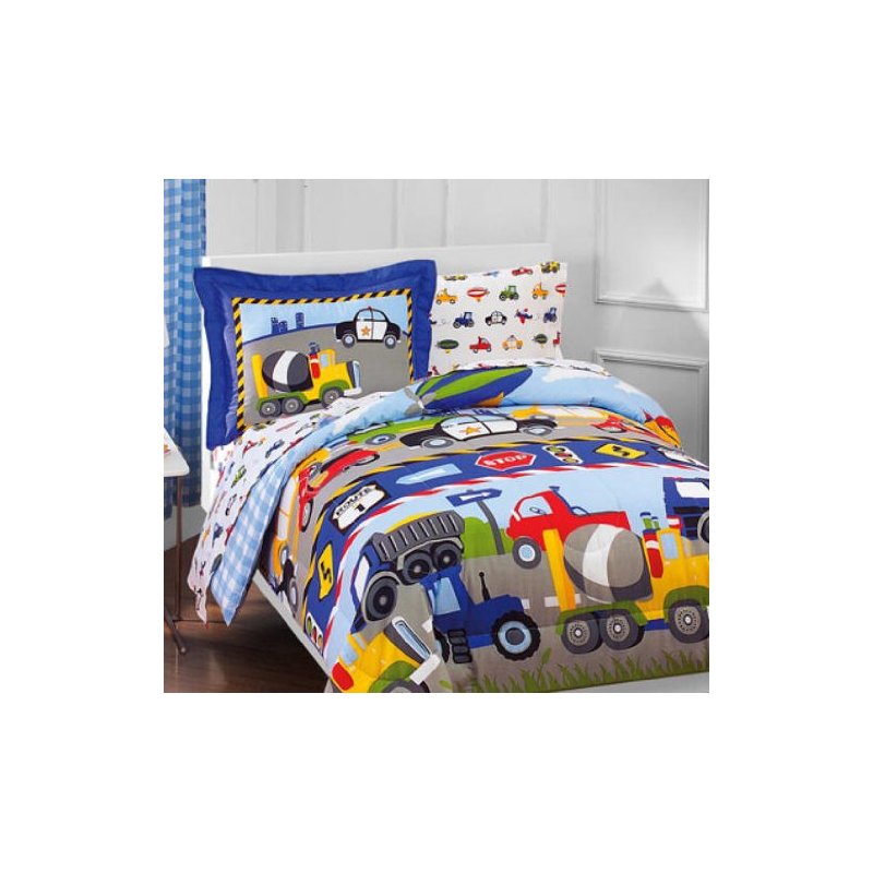 Construction Trucks, Police Cars, Tractors, Boys Twin Comforter Set (5 Piece Bedding)