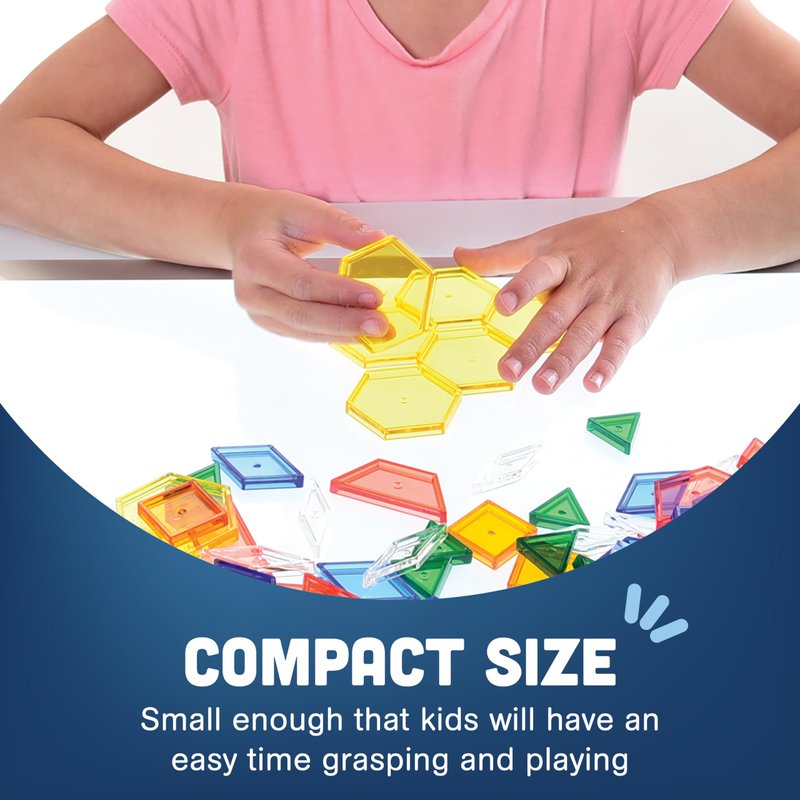 - 6 GEOMETRIC SHAPES: Includes six different shaped pattern blocks in 6 bright colors, providing a total of 147 pieces, offering children a wide range of possibilities to explore, play, and learn