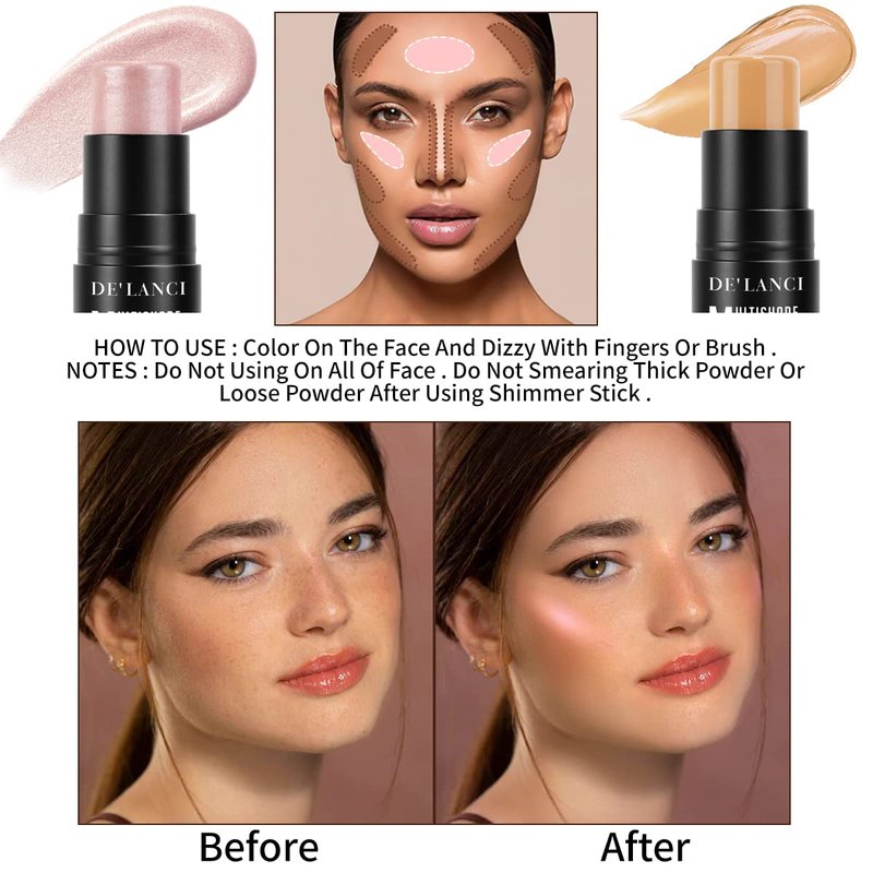 Contour Highlighter Makeup Stick, DE’LANCI 2 PCS Cream Contour Highlighter Sticks with Brush, New Updated Moisturize Highlighter and Concealer Stick, Face Contour Concealer Makeup For Light Fair Skin