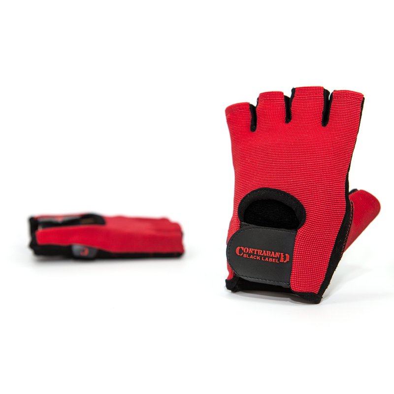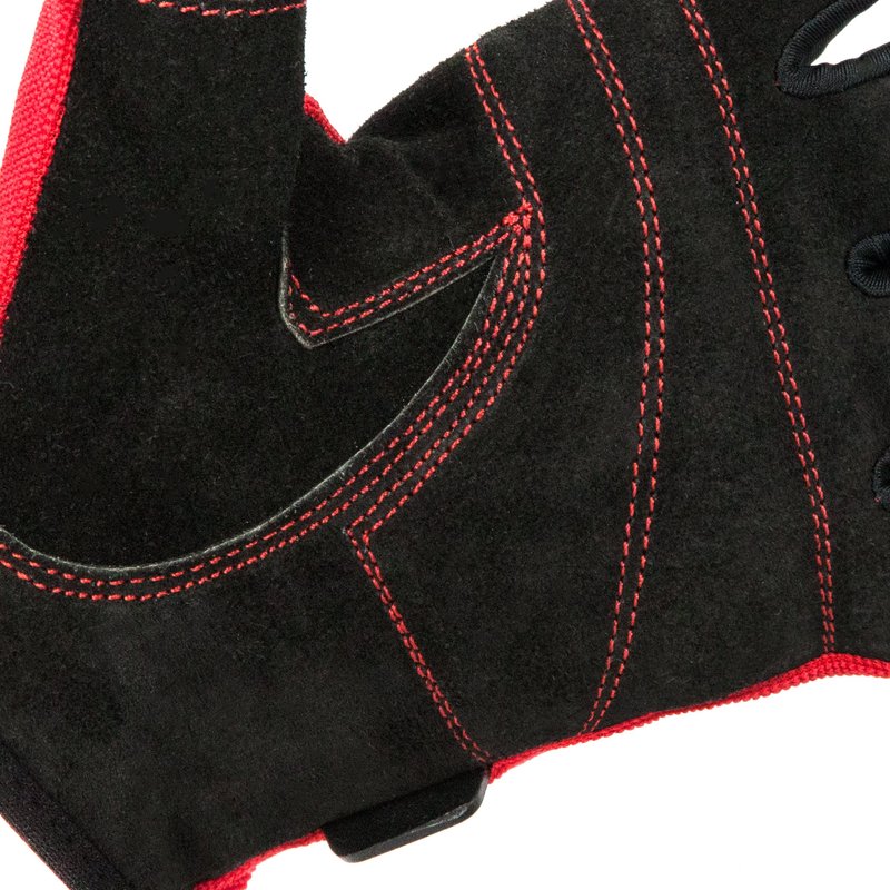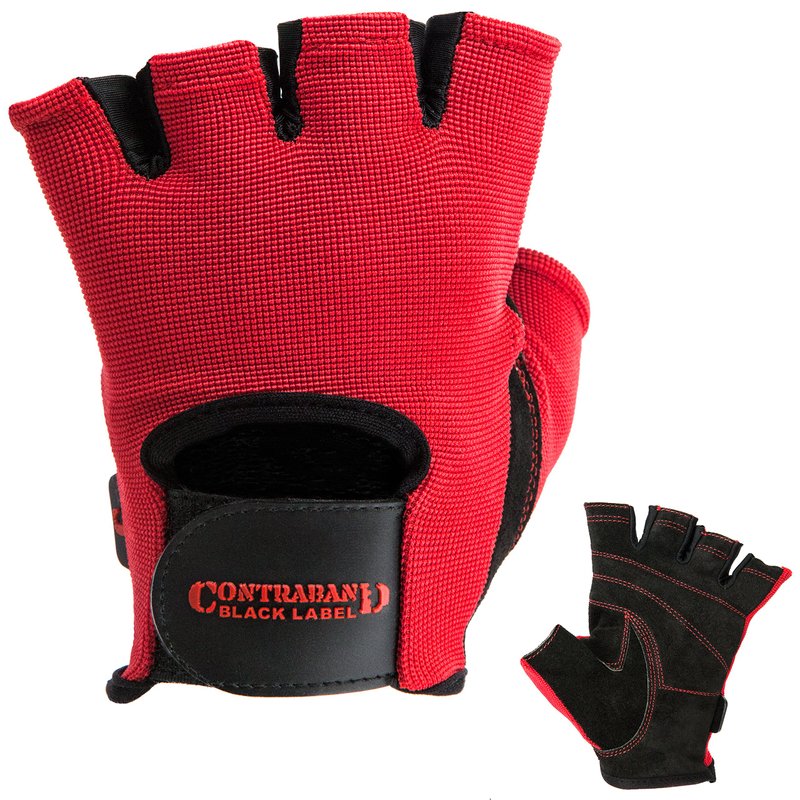 Contraband Black Label 5050 Mens Basic Leather Fingerless Weight Lifting Gloves - Durable Light - Medium Padded Split Leather Gym Gloves - Perfect Classic Lifting Gloves (Pair) (Red, Medium)