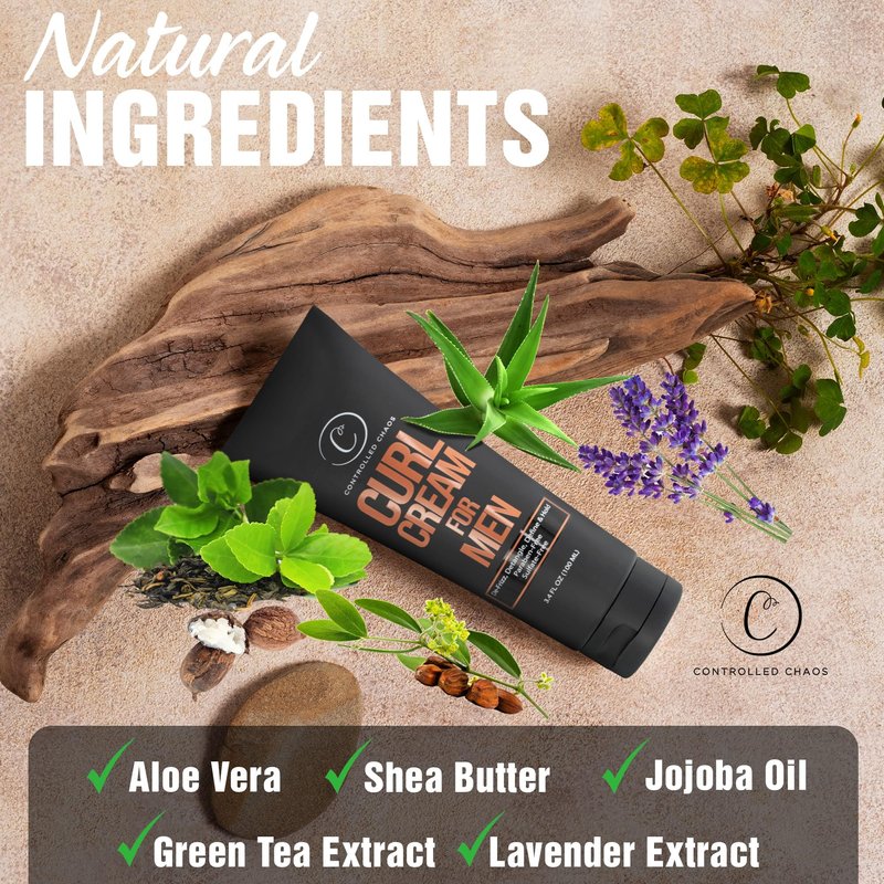 Controlled Chaos Curl Cream for Men - Hair Styling Cream For Wavy and Curly Hair With Shea Butter, Jojoba Oil, Coconut Oil, Add Smoothness, Anti-frizz, Sulfate-Free Curl Cream (3.4oz)