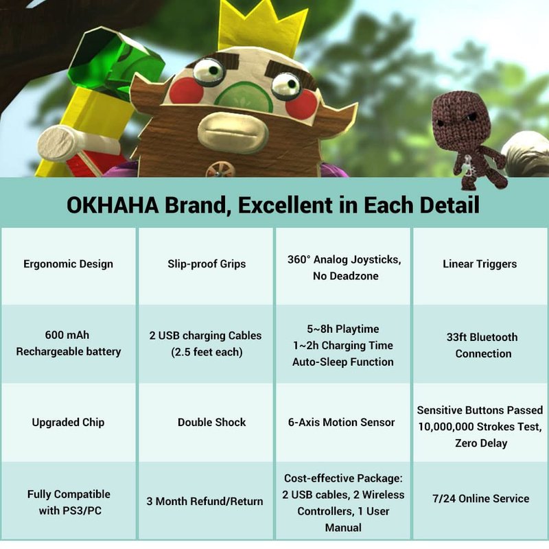 - 【Package Content & Lifetime Carefree After-sales Service】The delivery package includes 2 Controllers Wireless for PS3, 2 USB Charging Cables (2.5 feet), 1 User Manual; The wireless controllers for Sony PlayStation 3 offer a lifetime unconditional return and refund service.