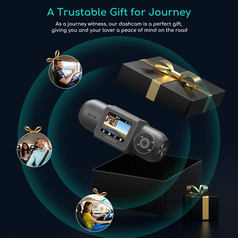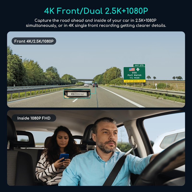 COOAU D30S is a 2.5K/1080P dual dash cam wireless (4K single front recording) designed to capture crystal-clear footage of your driving experience. With the dash cams' 2.5K(2560x1440p) resolution and up to cover 6 lanes wide-angle lens, this wifi dash cam front and inside provides exceptional video quality and clarity. The built-in GPS feature enables you to track your location and speed, making the dash camera an ideal tool for car management and tracking. The G-Sensor detects sudden impacts or collisions and automatically saves the footage to a separate folder. The car's screen allows you to easily view and playback footage on it, while the Wi-Fi connectivity enables you to download footage to your phone for easy sharing or storage. Other features of this full hd dash camera include headlight reminder, fatigue driving alert, time set, etc. The vital dashcam includes 2 dash cams: 1 to record in front of your vehicle and 1 to record inside your vehicle, all at the same time.