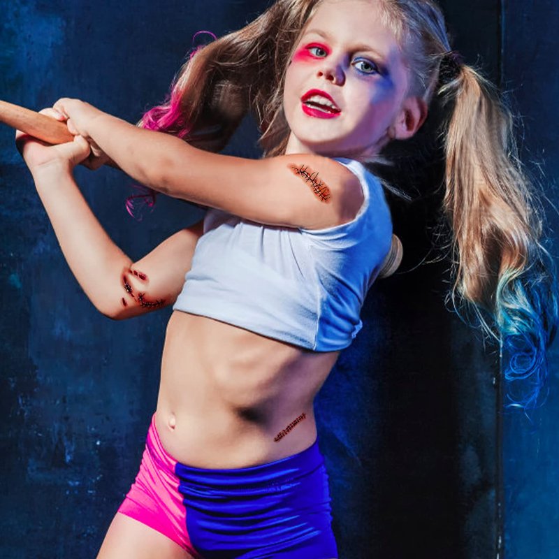 - HIGH QUALITY - Fake scars Halloween body make up stickers tattoo 14pcs (14 sheets),7 different partern for each sheet, you can use it to DIY your own style tattoos.More eye-catching and charming.