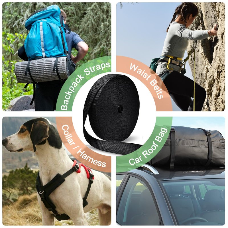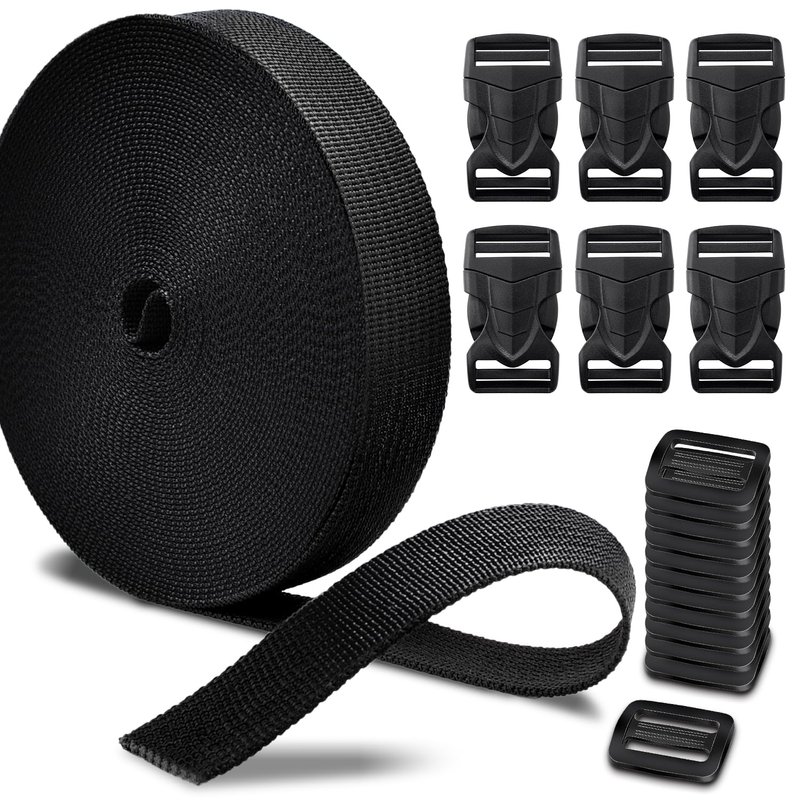 CooBigo 1" Buckles Straps Set:6 Pack Quick Release Buckles+10 Yard Webbing Straps 1 Inch Wide+12 Pcs Tri-Glide Sliders, Plastic Buckle Dual Adjustable Webbing No Sewing