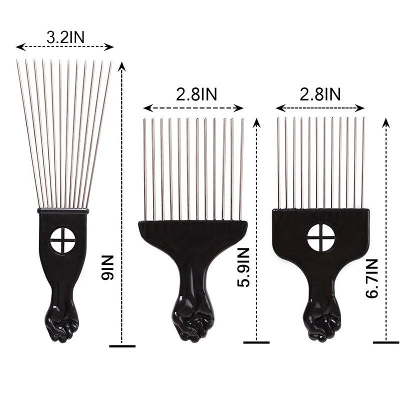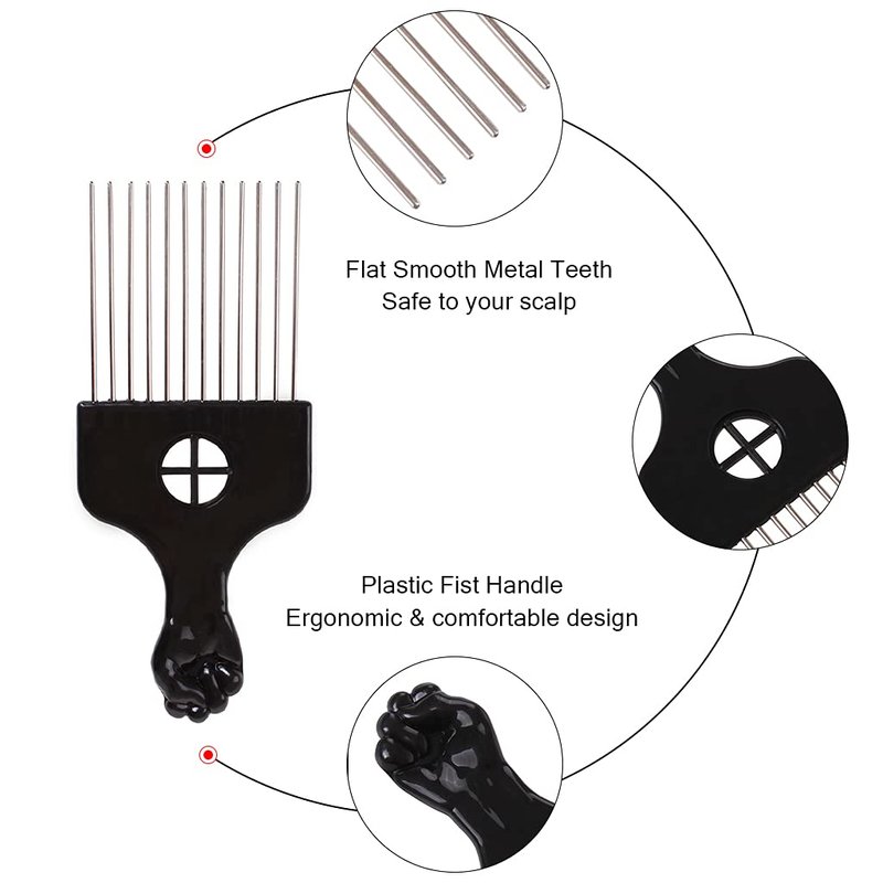 - Design:Classic black fist design with comfortable handle for greater control.Our hair pick combs can brush and pick hair well,It can be used for a long time.Necessary pick combs for women and men.
