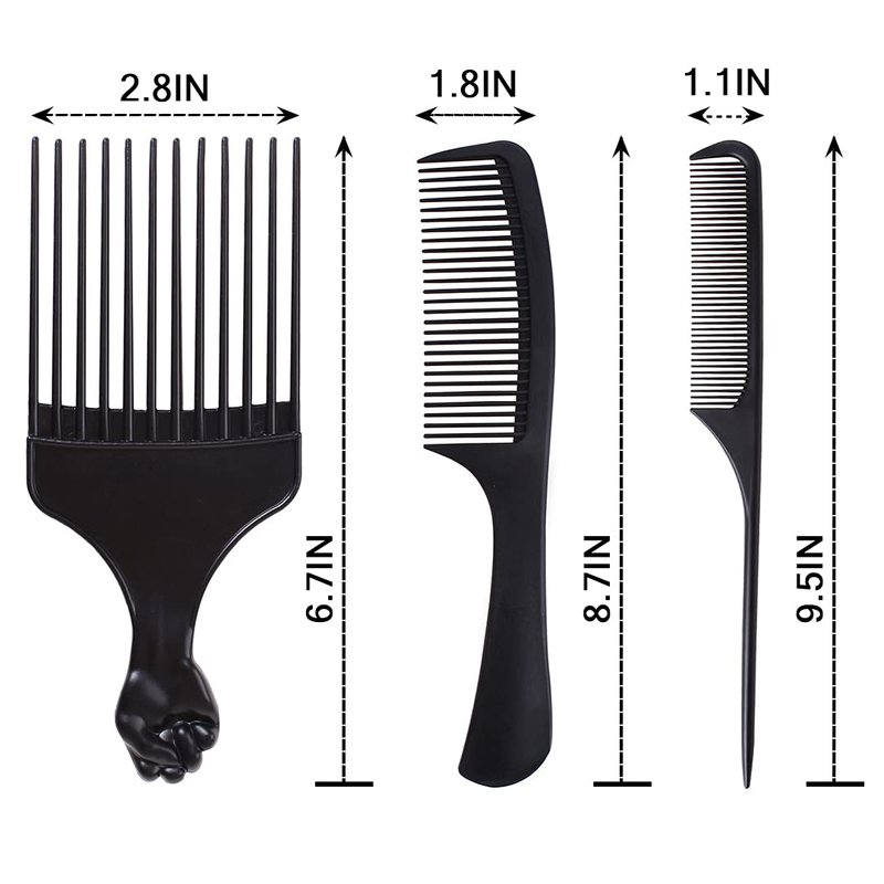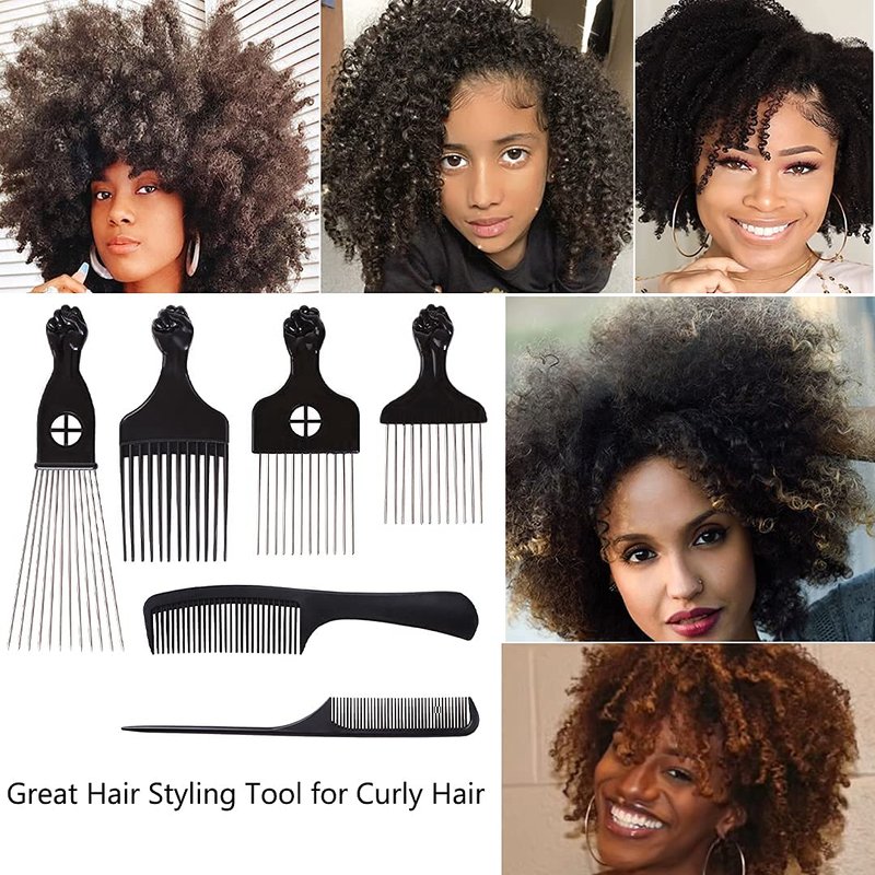 - Content:You will get 4 pcs Afro pick comb,1 pcs rat tail comb,1pcs wide tooth combs,All these combs suitable for all family persons,Everyone have suitable style comb.