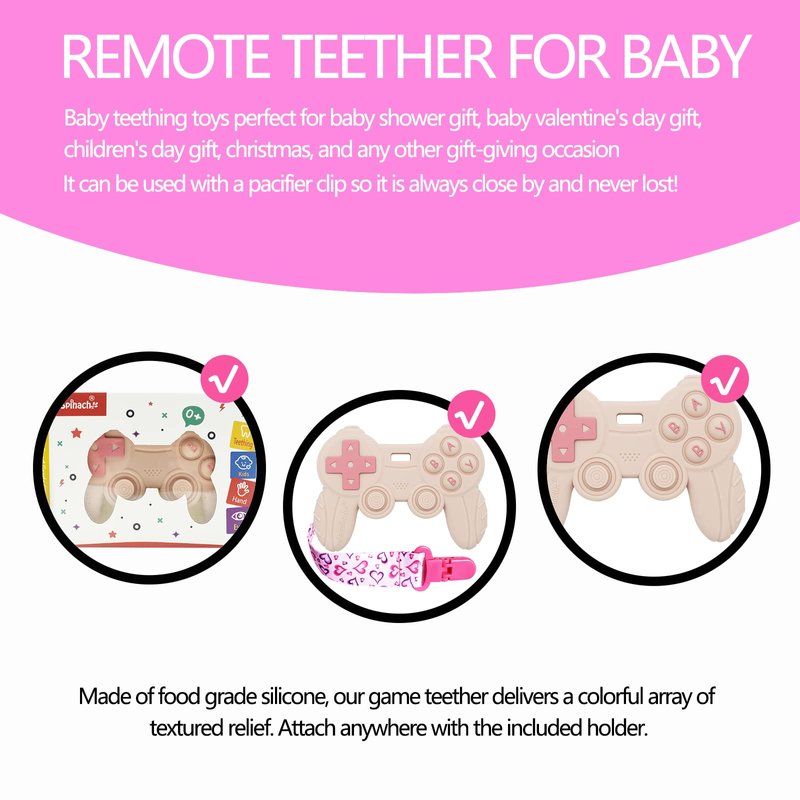 Cool Remote Game Control Teething Toy for Babies 0-6 6-12 Months,Game Controller Teether for Gamer Parents,Baby's First Valentines Day Gifts,Silicone Remote Chew Toys(Pink
