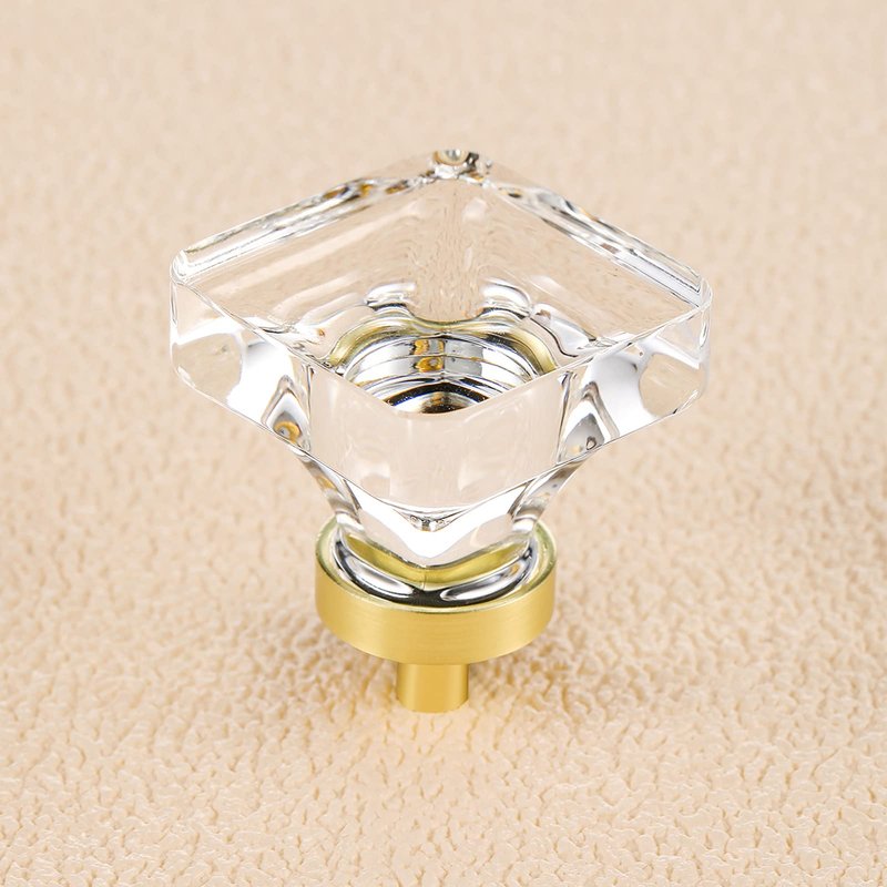 coolnews 8 Pack Crystal Glass Drawer Knobs Brushed Brass/Gold Cabinet Knobs Square Dresser Knobs and Pulls for Kitchen Cupboard 1-3/8 Inch