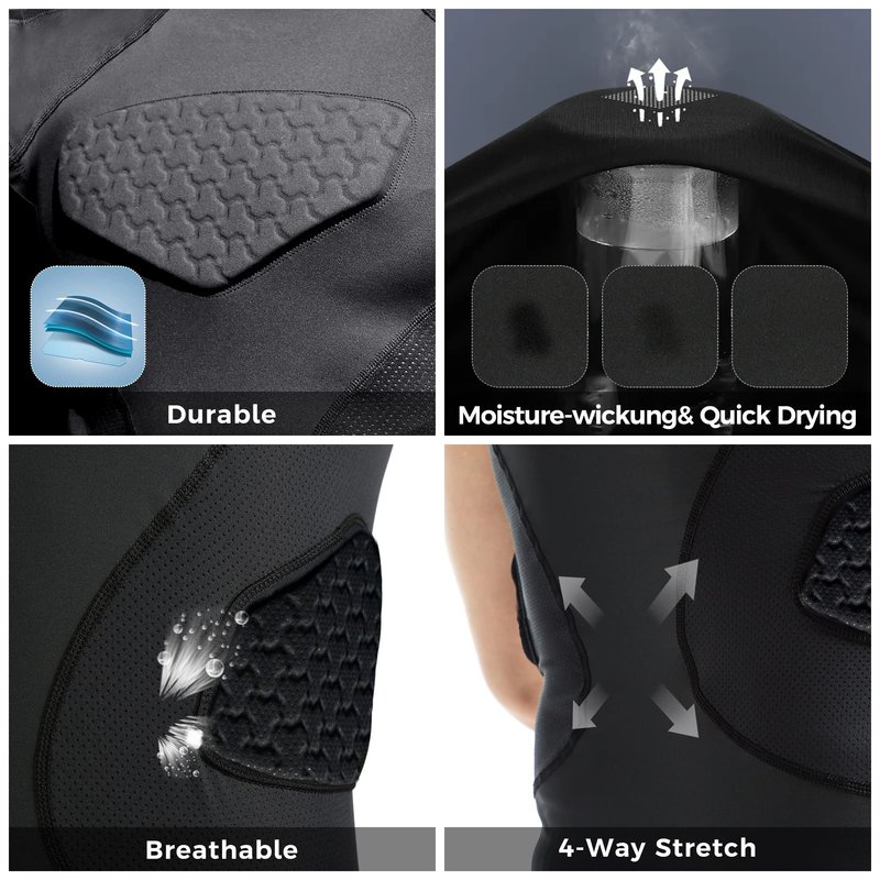 - COOLOMG padded compression shirt increases circulation and advanced protection without restricting the range of motion. 3D flexibility and ergonomic flat seams ensure perfect freedom of movement and minimize the formation of pressure points and abrasions.