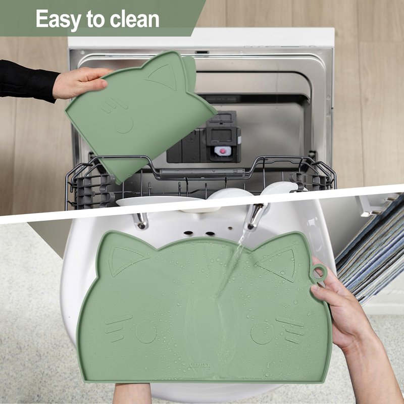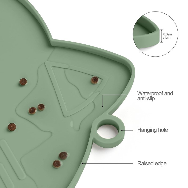 Coomazy Cute Kitty Puppy Face Silicone Cat Dog Feeding Mat for Food Bowls and Water Drinking Fountain Tray (Avocado, Medium KittyFace)