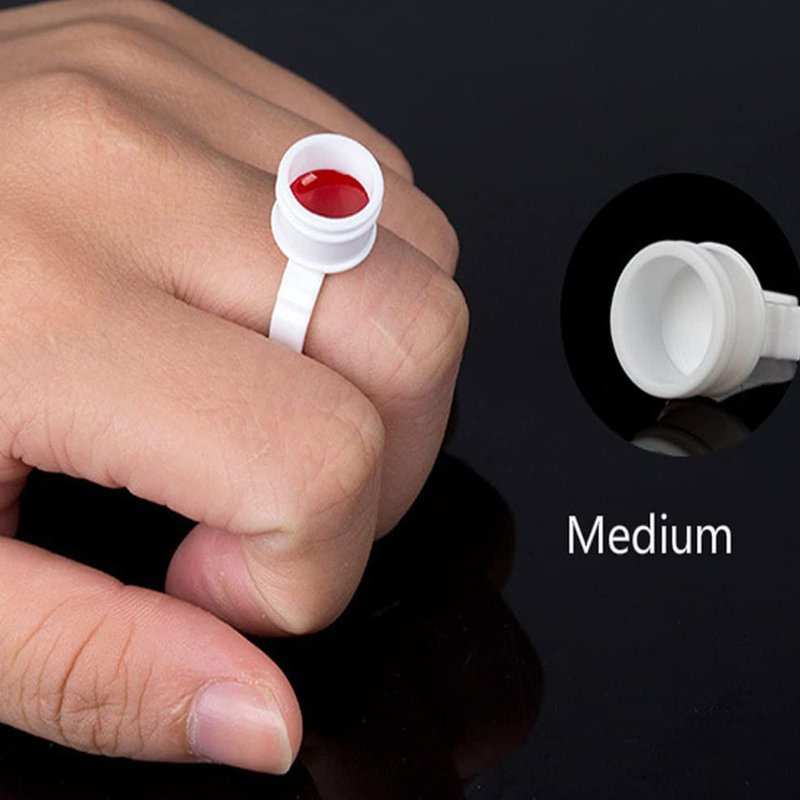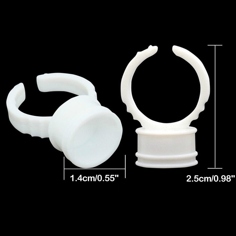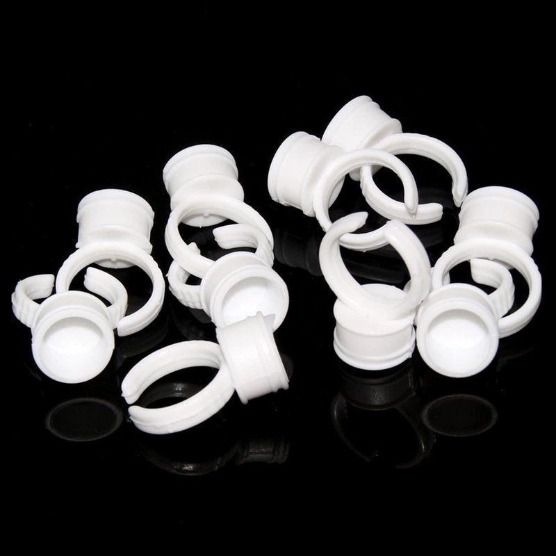 - Tattoo Ink Holder:— Made of flexible ABS plastic.Color: White. Package includes:100PCS disposable Eyelash Extension glue rings caps
