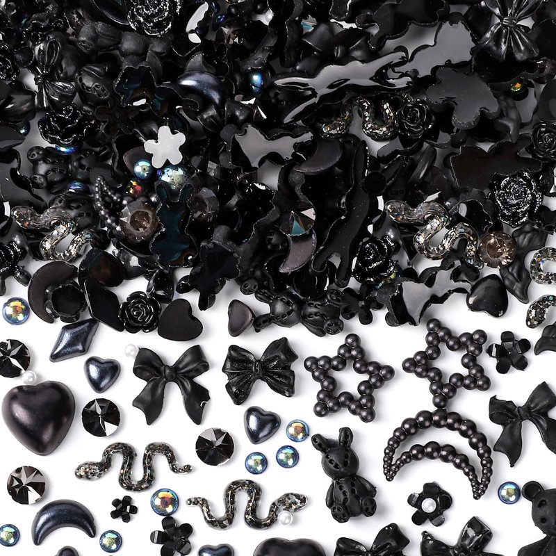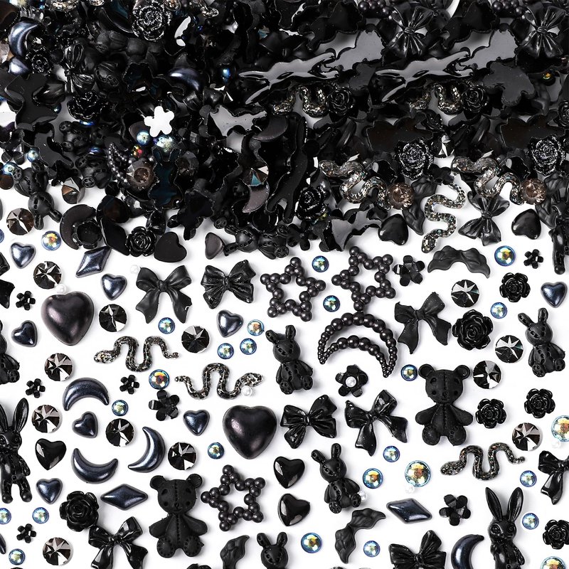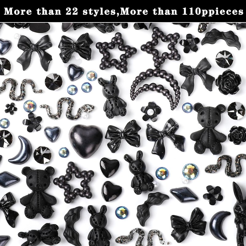COOSLIM 110 Pieces 3D Bow Nail Charms for Acrylic Nails, Rose Flower Butterfly Bowknot Heart Bear Rabbit Star Bows Charms for Nail Art Accessories Craft(Black+2)