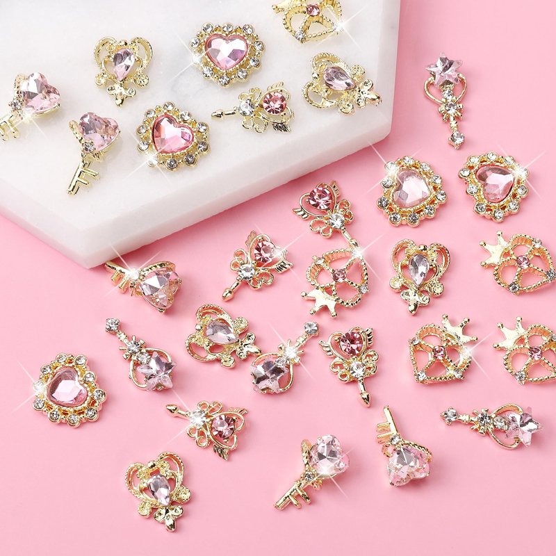 - Charming & Bling: Whether it's for a romantic Valentine's Day look or a glamorous everyday style, these pink heart nail charms will make your nails stand out. Get creative and adorn your nails with these eye-catching accessories.