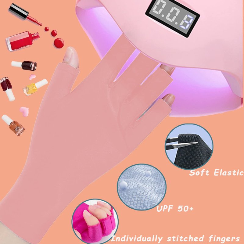 - 【UV Protection & Health】Most nail lamps are UV lamps, frequent use of nail lamps without protective measures will make your hand skin dark, dry, rough and aging. Our uv gloves for nails can give 99% effective protection for your hands from UV and bright light damage caused by nail dryers.