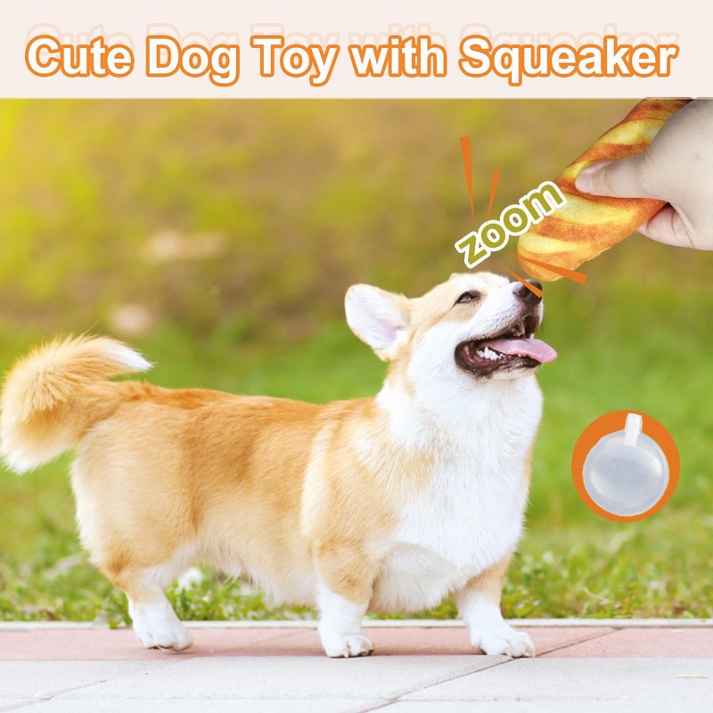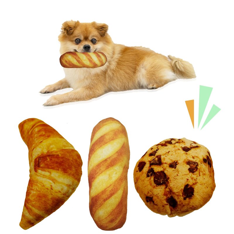 - Delivery Content: 3 Pcs breads food shape Dog Toys,super cute and fun. Their soft and plush texture also providing comfort and companionship for your furry friend. The appropriate size of our puppy teething toys for small/medium dogs