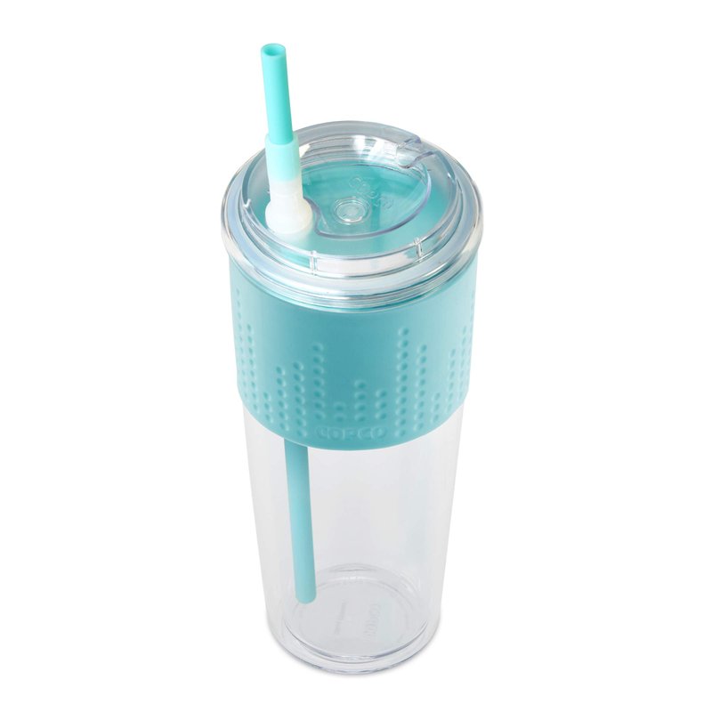 Copco Lock-n-Roll Double Wall Tritian Spill-Proof Tumbler with Soft Grip Sleeve and Patented Flip Up Straw, 20-Ounce, Teal